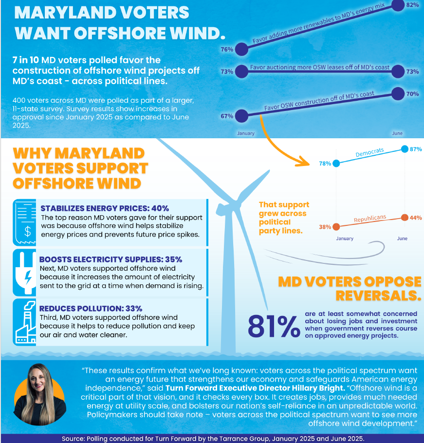 In polling done in June 2025, seven out of 10 Maryland voters favor the construction off offshore wind — across political lines.